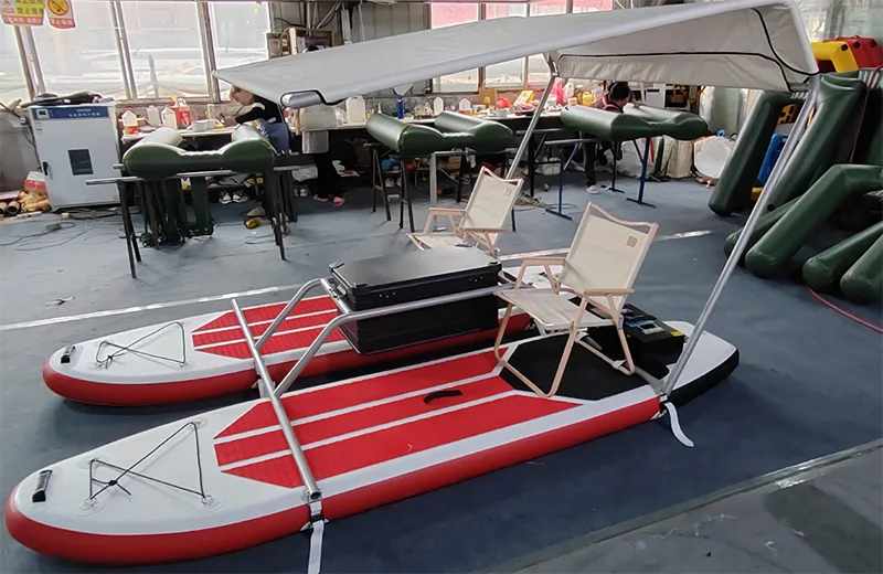 1. Einzigartiges Design: - Leichte Materialien PVC -Röhrchen (Drahtkissen) Surfbrett mit Aluminiumrahmen oder stalinloser Stahlrahmen. Die Stabilität und Manövrierfähigkeit auf Wasser vorantreiben. Dieser aufblasbare Katamaran könnte eine stromlinienförmige Form verringern, die die Wasserbeständigkeit reduziert.