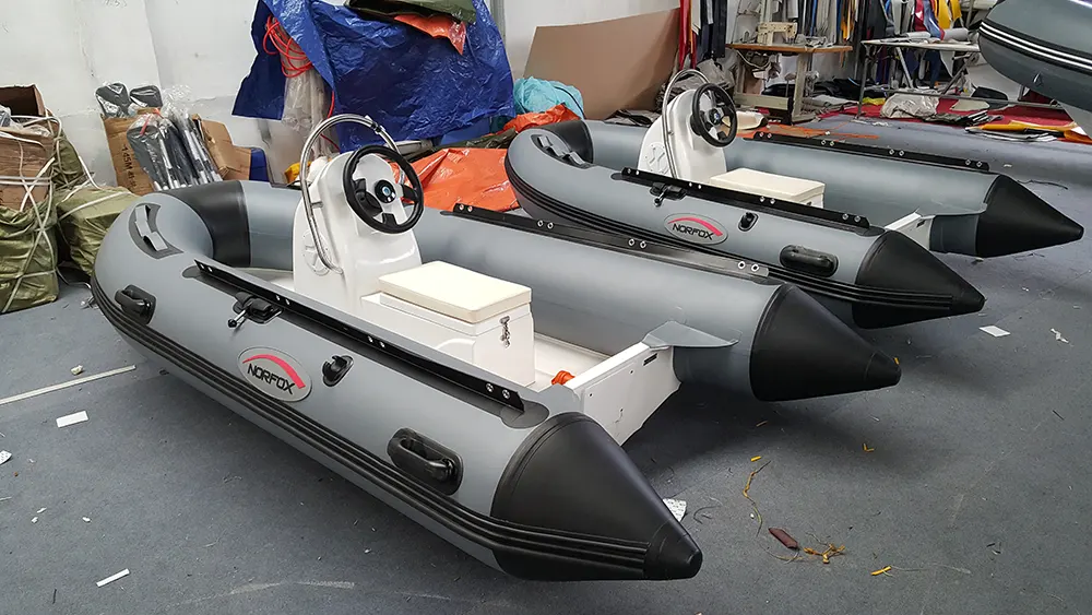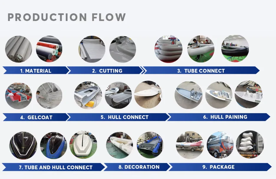 1.Alle unsere halbstarren Glasfaser-Schlauchboote als Ersatz für Jet-Ski bestehen aus einem hochwertigen Glasfaserrumpf und einem Hypalonrohr in Marinequalität.