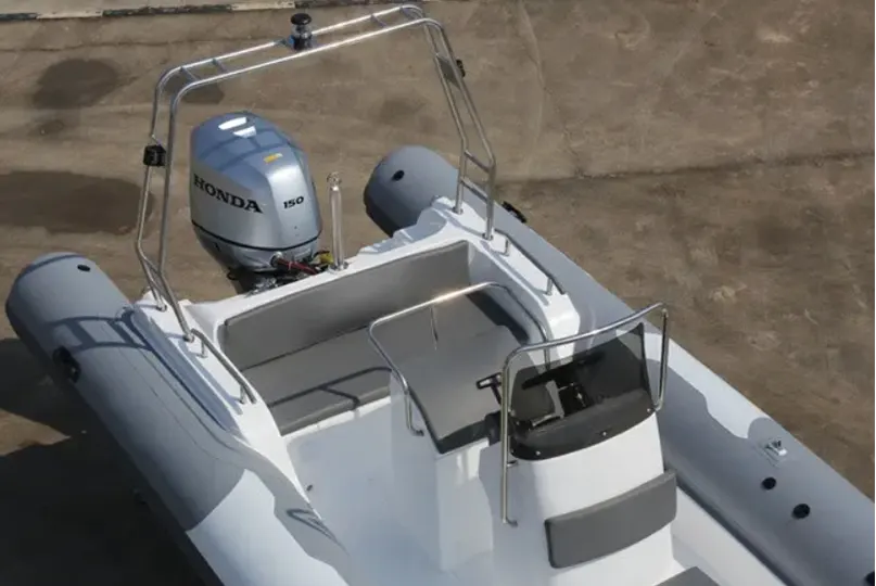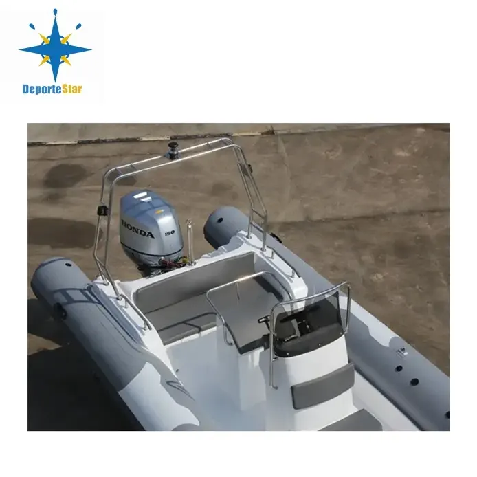 Dieses 28 Fuß lange Sport-Festrumpfschlauchboot mit einer Länge von 6,8 m kann 4 Stück in einen 45-HQ-Container laden. Wenn Sie einen Motor mit maximaler PS-Leistung einbauen möchten, wenden Sie sich bitte an unser Werk, was für Boote sehr wichtig ist.